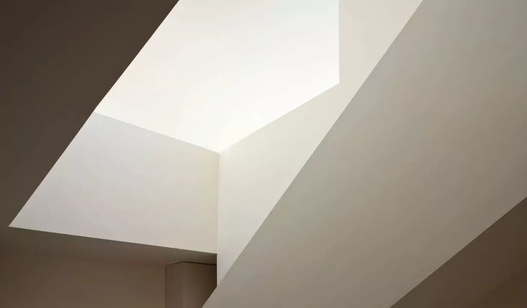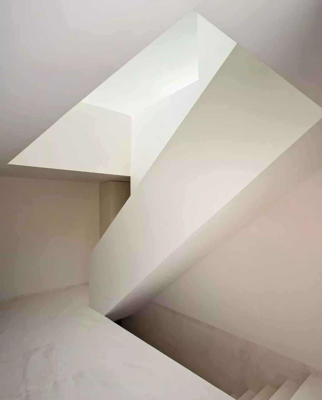 最令人意外的是楼梯间的设计,解构式的极简探索,让人看到了既简单又复杂的空间关系。从天窗洒下的自然光,是调和室内冲突最好的法宝,