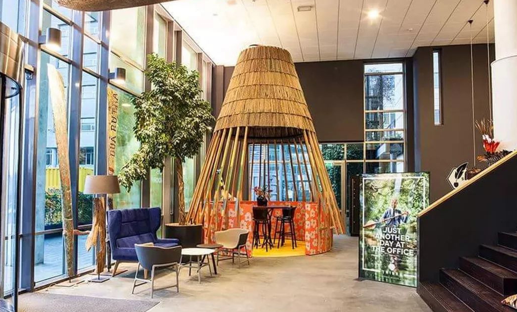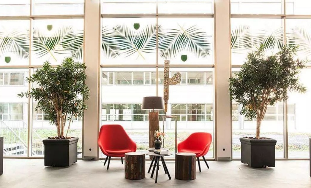 ▷ 冰冷与温暖兼具的装饰,灰色的地面与明亮的黄色及红色形成鲜明的对比,时刻散发着初春的气息。