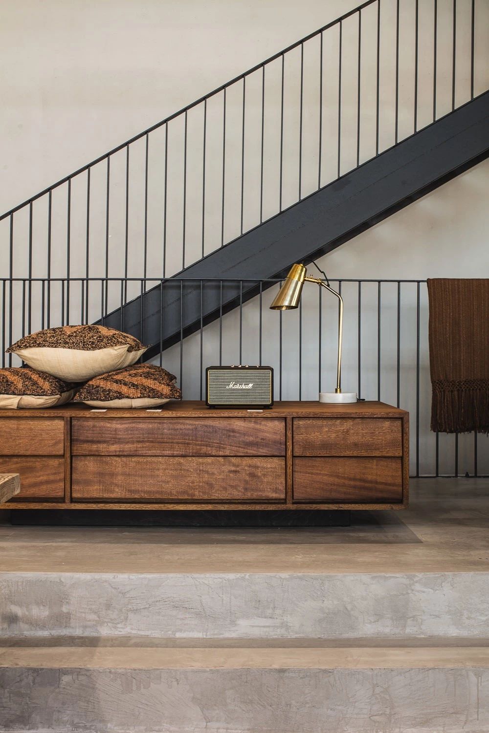 复古的家具结合粗糙自然的纹理和异国情调的小物,给原本开放的空间赋予了适当的温暖。
