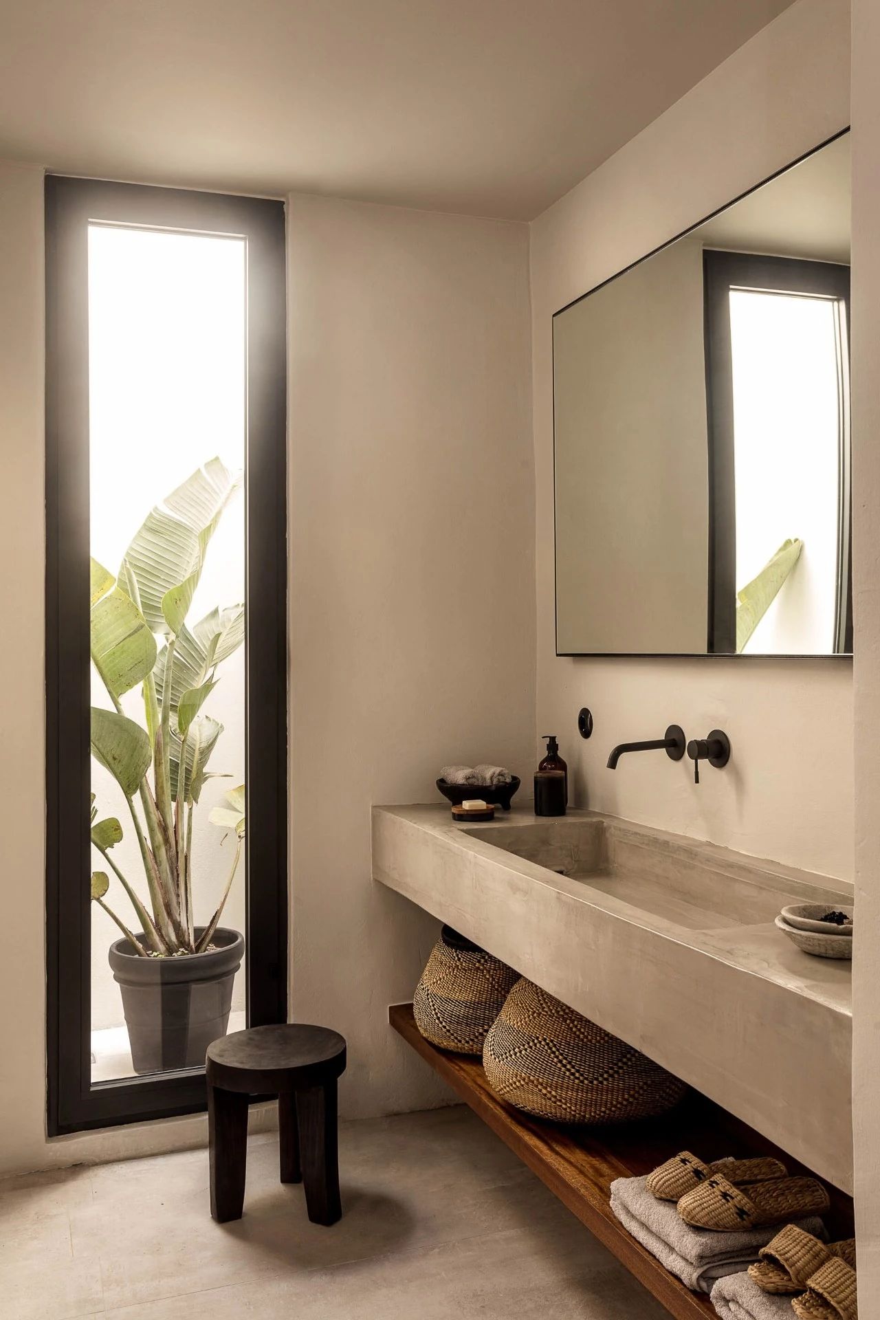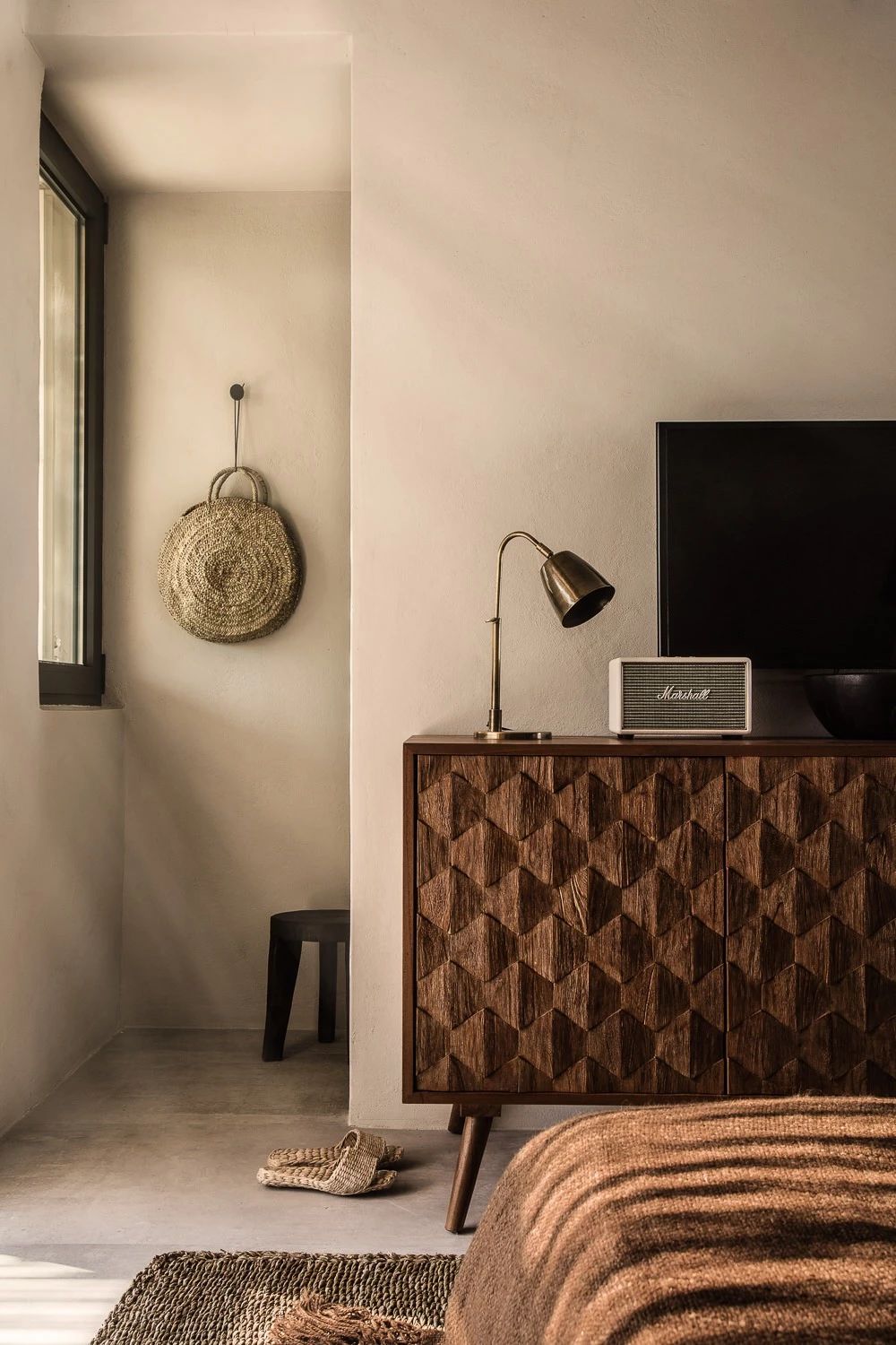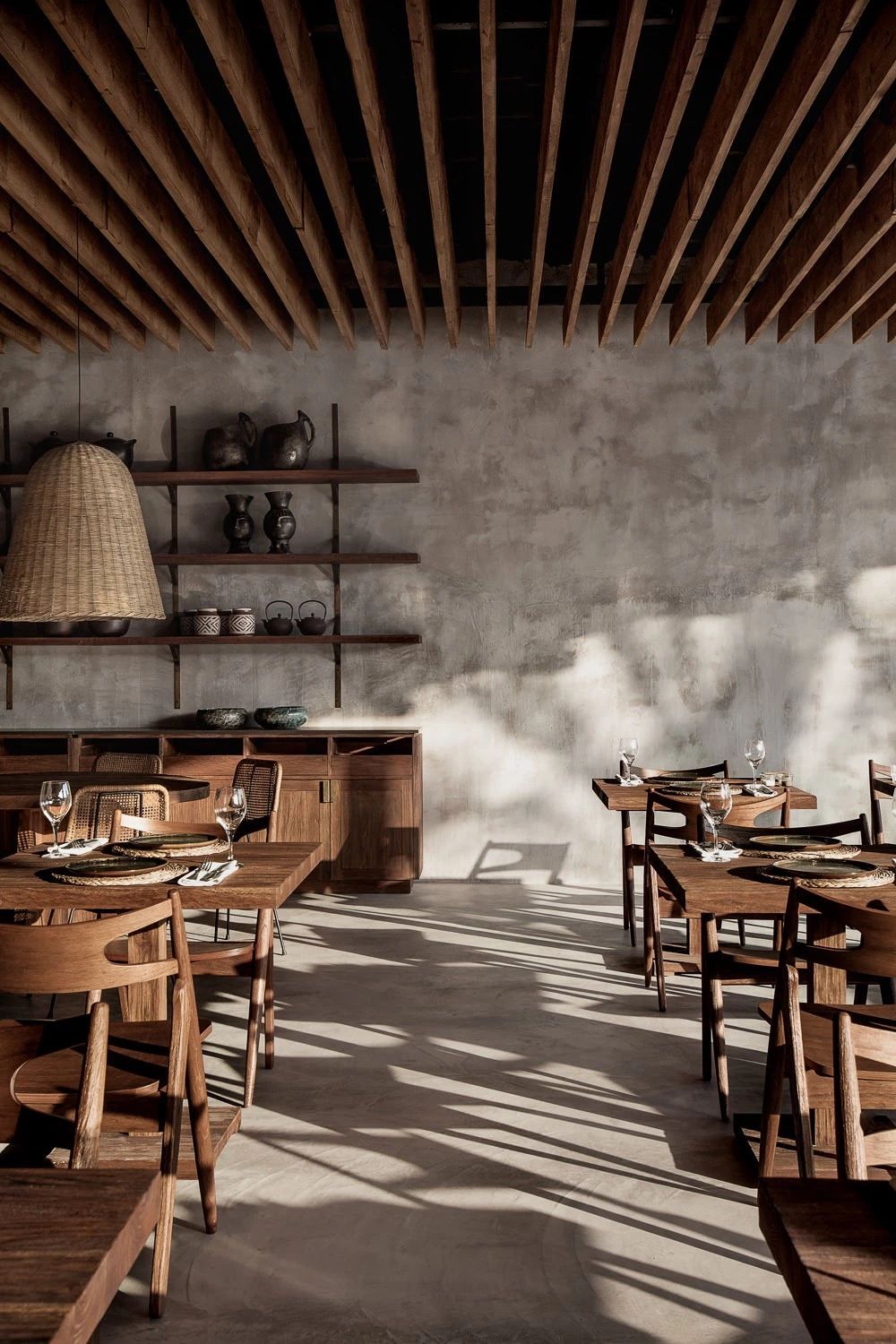 从那张迷人的椅子上,可以看到它原始的木头部件,到传统的希腊文物凳,沉重的棉花垫,甚至是艺术水泥制作的台面的弯曲曲线,每一块都是有机的形式或来源。