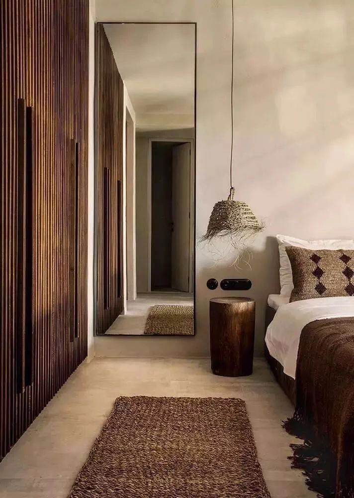 室内灰白色艺术水泥表面和柔和的编织物中和,理性克制的线条轮廓与丰富的材质和手工制作的细节混合在一起。