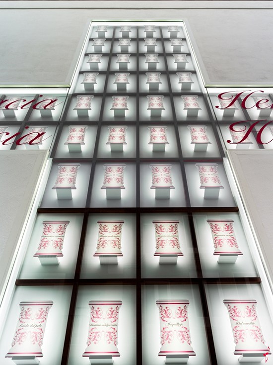 Farmacia Hermosa药店的空间的立面非常具有特色,因为它实现了一个高6米,宽6米的大十字架,其中64个“ albarellos”,每个都传递了不同的信息。