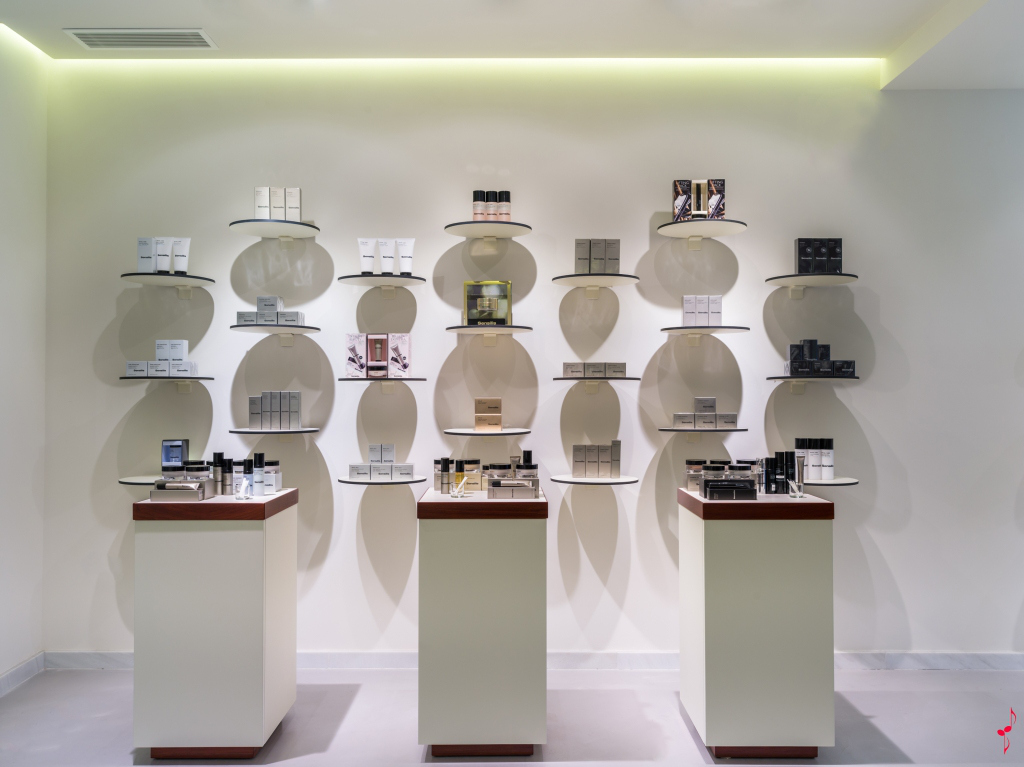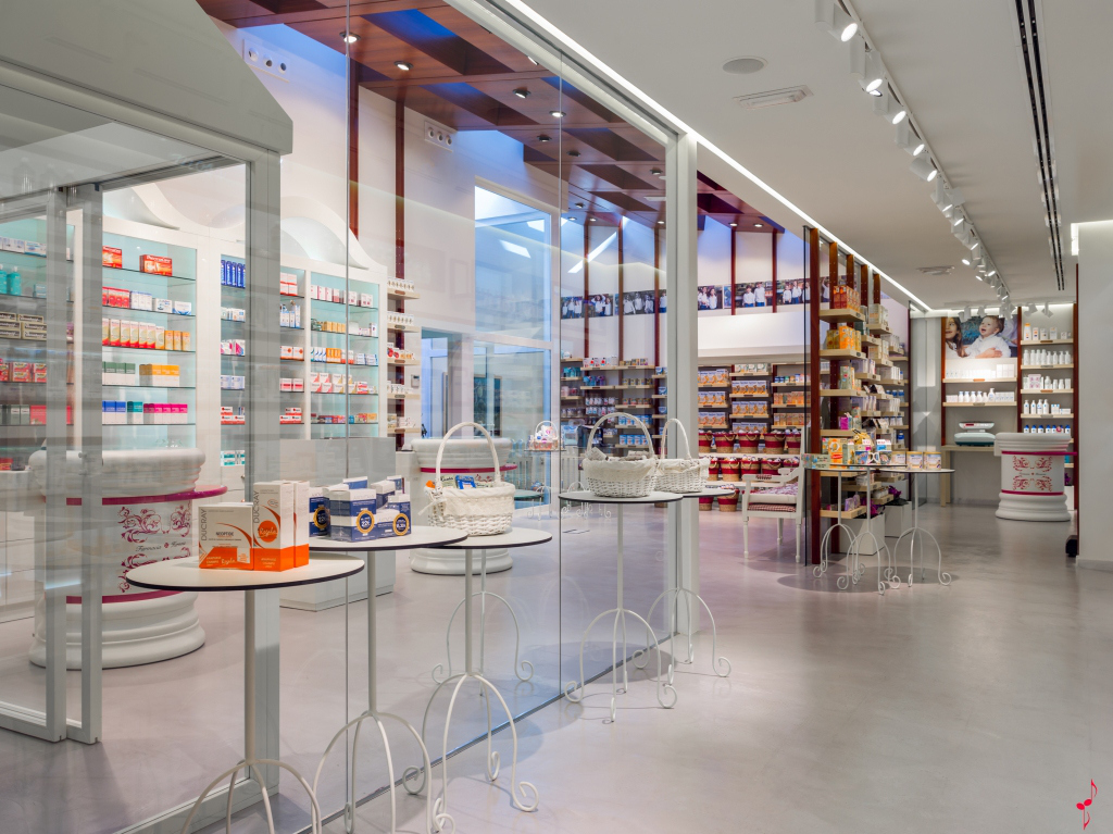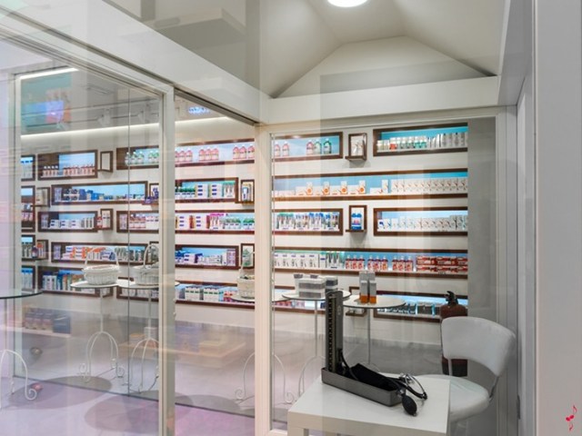 照明、白色艺术水泥墙壁和商品实现了现代化和透明的效果,非常适合医药领域。另一方面,它们与该区域中靠近消费者的元素混合在一起,使消费者产生同理心和亲密感。