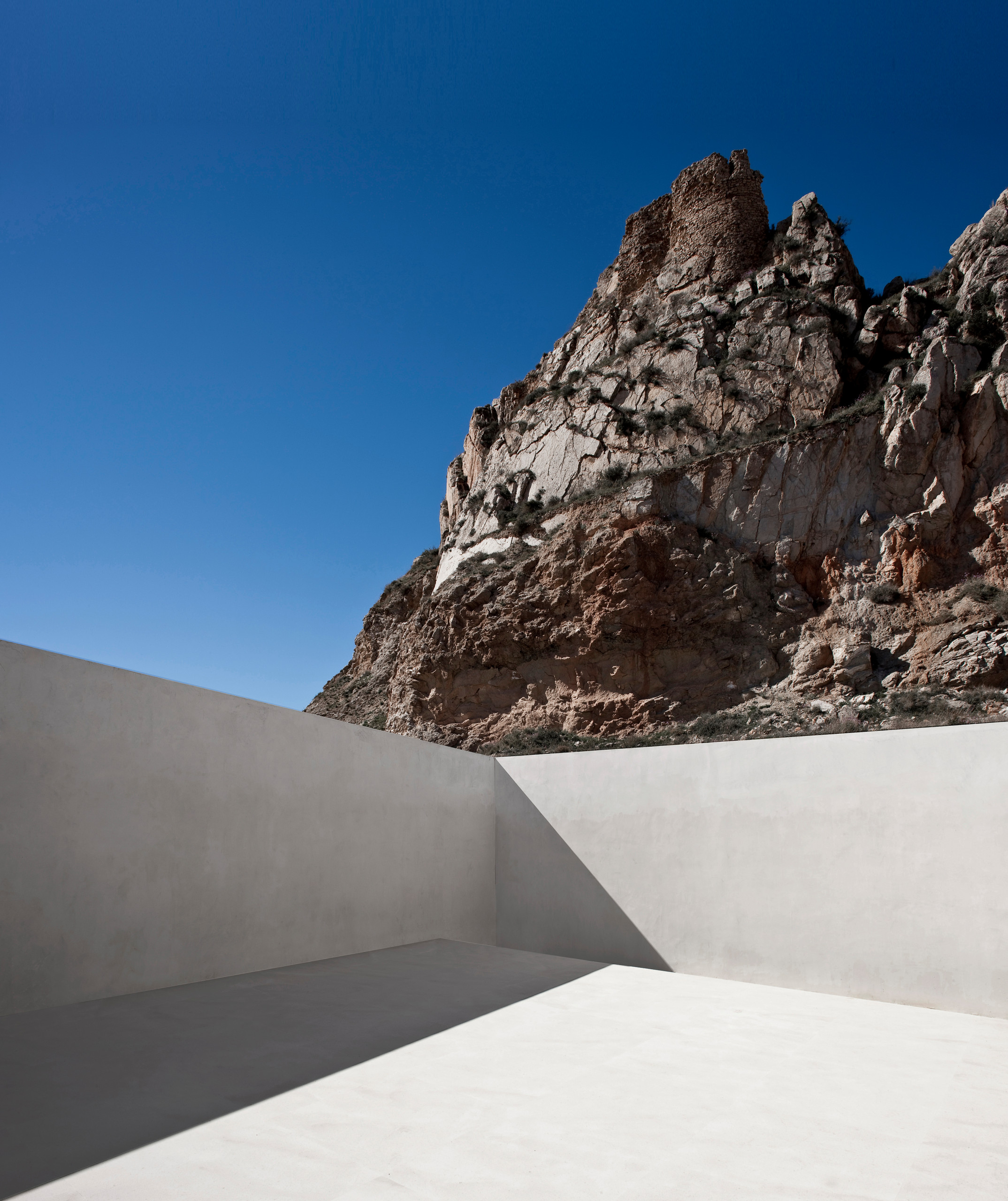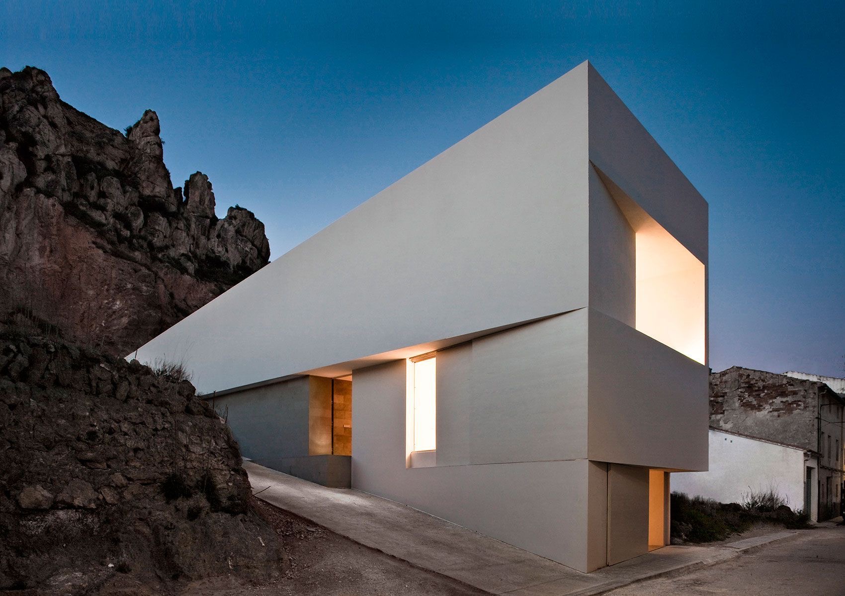 在瓦伦西亚自治区西南部的阿约拉市,拥有着独特美景山丘上,有一座白房子,与周边恶劣的环境形成强烈的对比,白房子一尘不染,周边却丘壑纵横,极强的反差让这座白色房子尤为突出。 这座房子几乎看起来像是用纸折叠起来的,因此在折叠处创建了一个露台和阳台,整个房子都可以看到一座落基山脉的景色,一座中世纪城堡就坐落在这座山上。