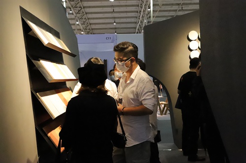 展厅由建筑师郭宇辰倾力打造,打破传统展位的空间的同时给它带来一个新的秩序,一个有功能的雕塑,一个与现实世界有游离感的场所。