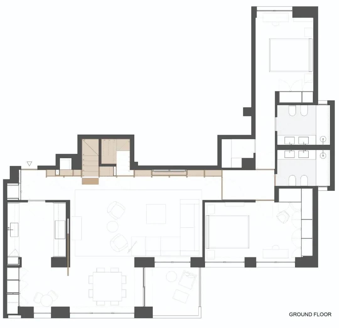 这是一座20世纪上半叶的理性主义的住宅,建筑师Iker Ochotorena,在尊重其起源的基础上进行了一种装饰,对于线条比例和循环的用料非常讲究,创造寂静温暖的居所。