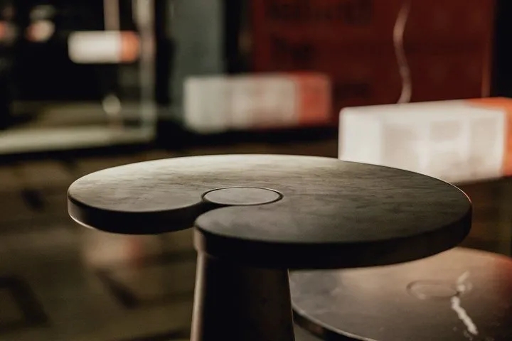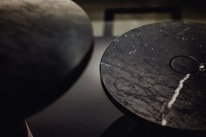 Eros系列的新形状和尺寸,一套没有接头或夹子的大理石桌子。Eros 桌子的结构设计涉及在顶部和腿之间基于重力的嵌入,这通过腿本身的截锥形部分成为可能。这种结构可轻松容纳桌面,将其锁定在预设位置。