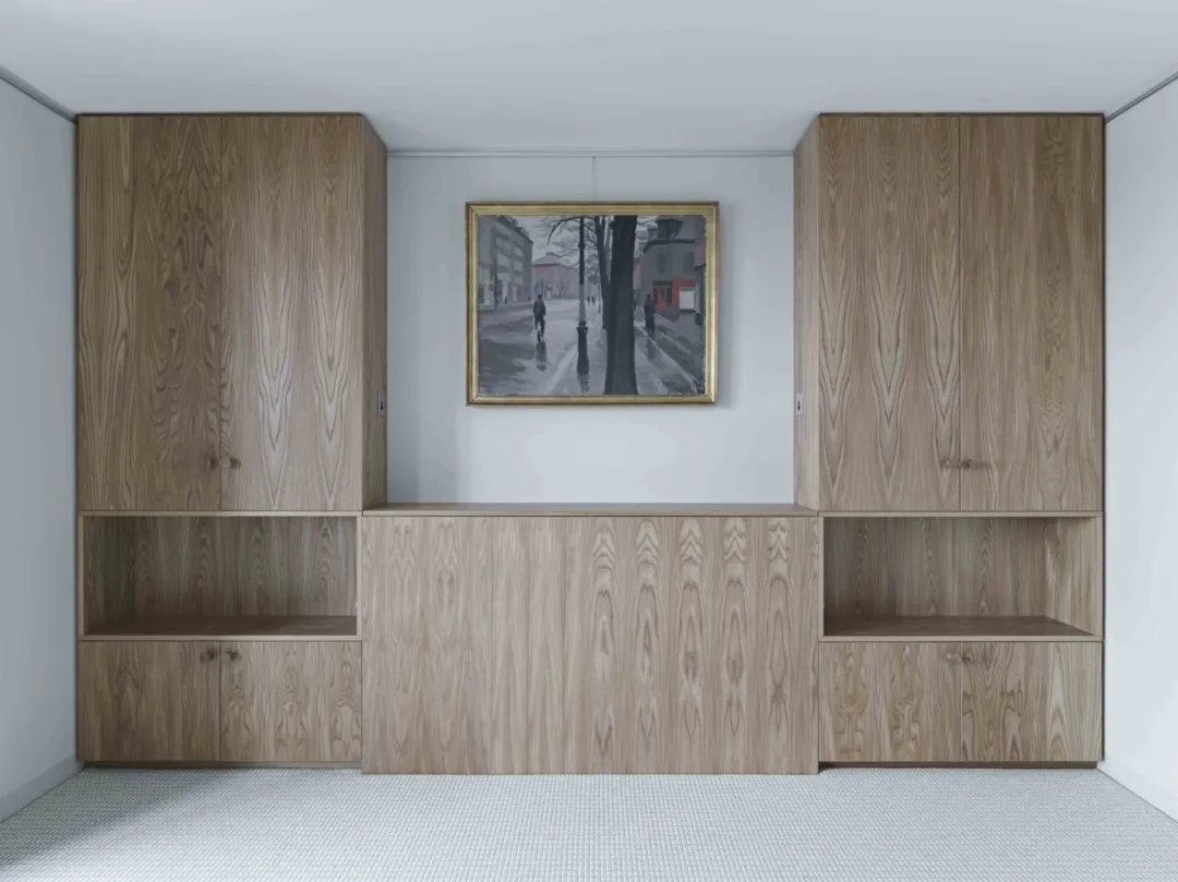 T-sa被问到是否可以将现有的公寓改造成空间,其中包含一些日本传统住宅的特征和氛围。现有的公寓是巴比肯莎士比亚大厦中的 8C 型公寓,为一个包含丰富建筑参考的简报做出了贡献。在空间上,两卧室公寓已经从原来的设计改变到现在封闭的阳台,增加了客厅/餐厅的内部地板面积。