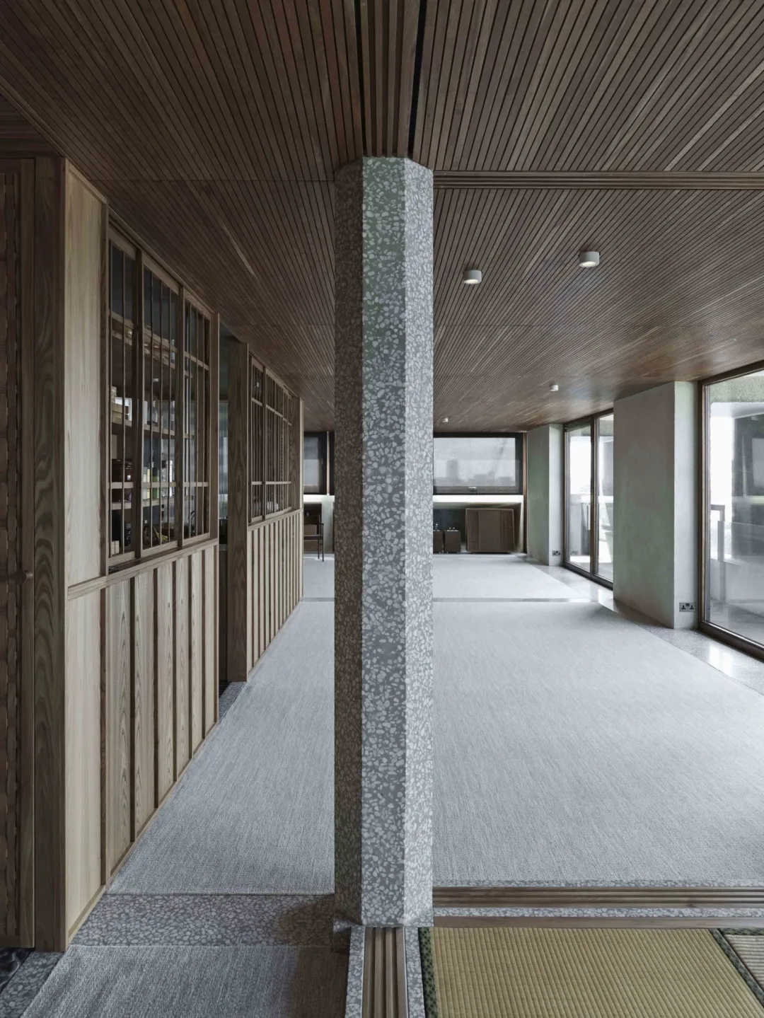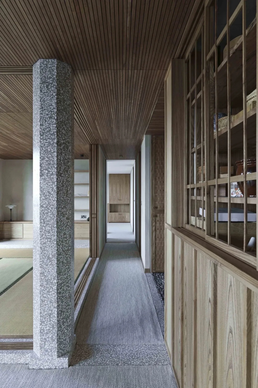 受到 Shirai 在静冈 Sekisui-kan 的项目的启发,Takero Shimazaki做出了一种姿态,即这个非结构性的柱子可以作为这种室内建筑的两种相互冲突的语言之间的桥梁。日本房屋的柱子也很有象征意义。
