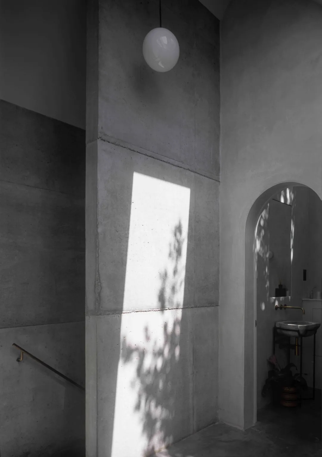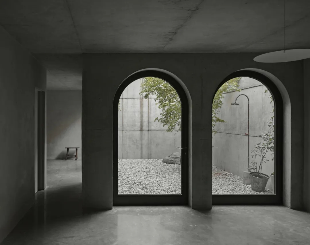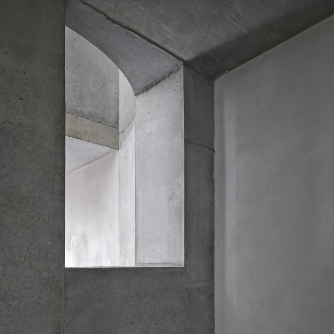 作为一个城市隐蔽的聚会空间,尤其是下沉式庭院,这所房子做得十分考究。远离繁忙的道路、铁路和场地周围的房屋,混凝土体量似乎慷慨地包裹着微型花园。
