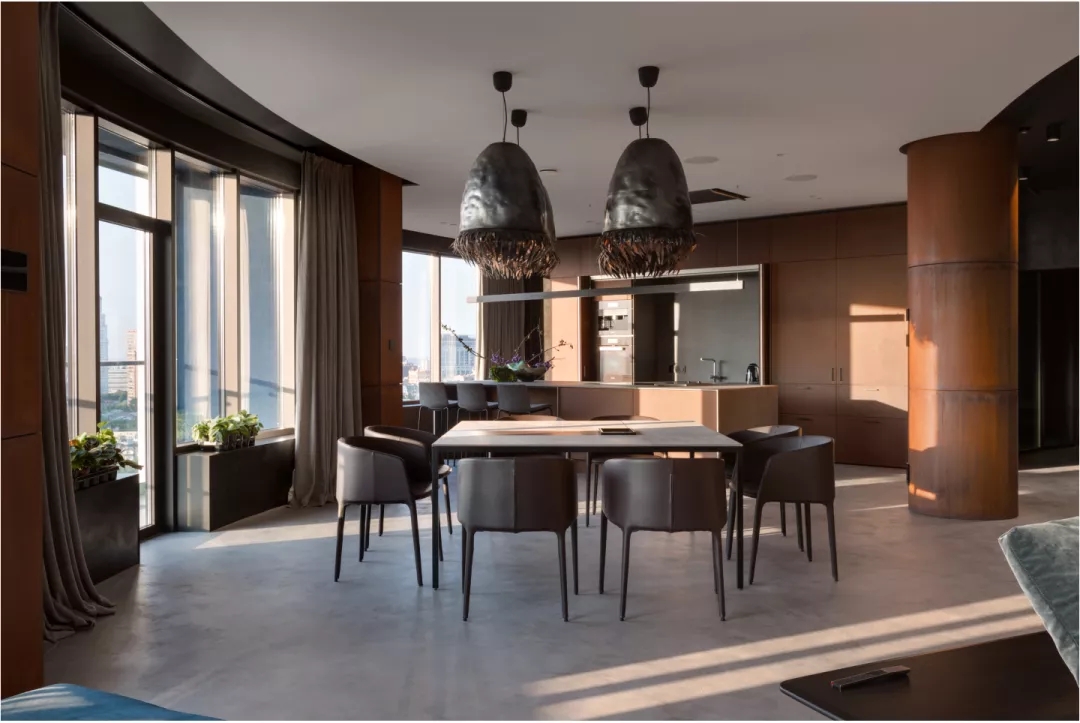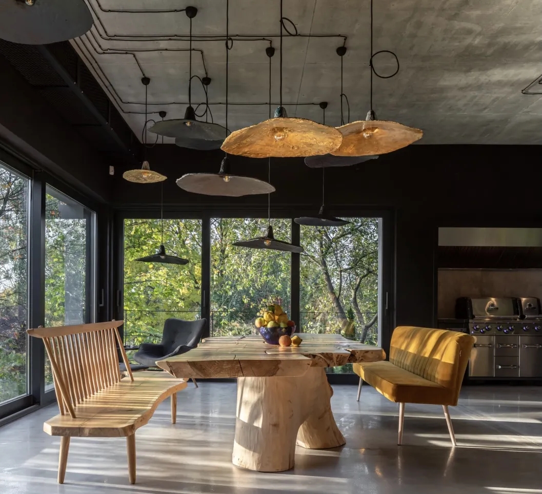 马赫诺工作室是由建筑师、设计师、陶艺家组成的现代乌克兰设计和建筑的工作室。专注做将乌克兰传统、世界趋势和日本侘寂哲学、自然力量、人类才能和建筑思想交织在一起的项目。设计多选择天然材料和颜色,木材、混凝土、铜、粘土、亚麻,以创造更加亲近、珍贵的舒适感。