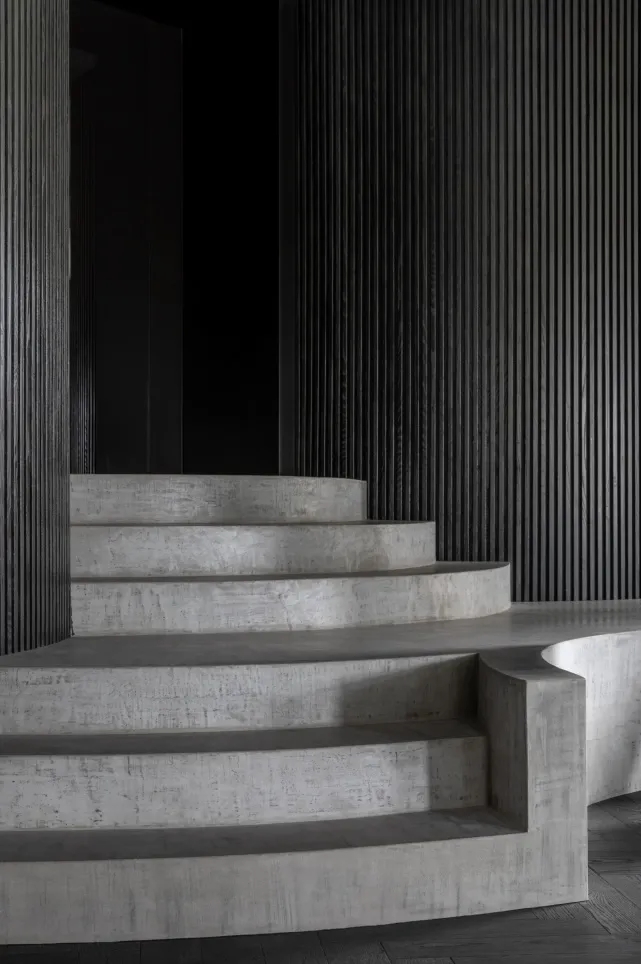 对于YOGO APARTMENT,主要的挑战是复杂的重建:有必要将三个半径的公寓合并成一个看起来不像新月的连贯公寓。