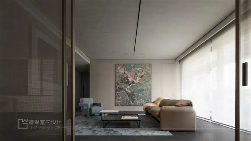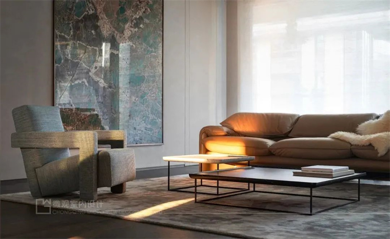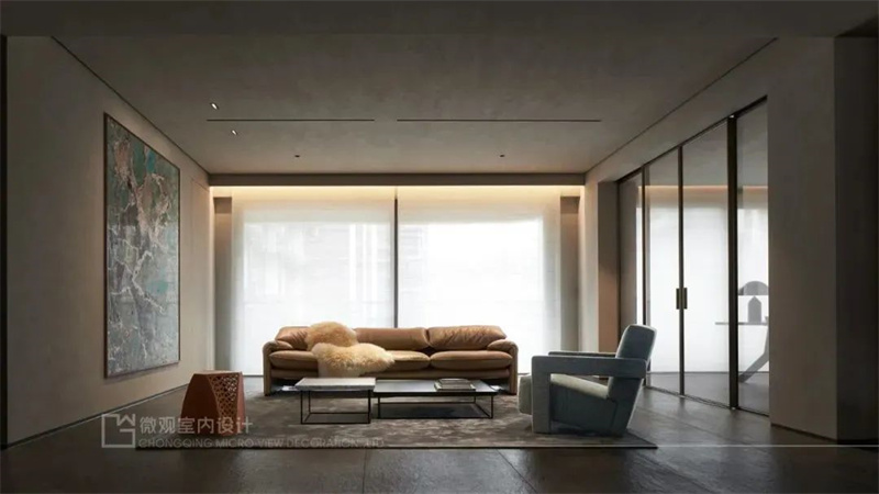 客厅的设计更多的是风格的包容,整个空间的西慕艺术水泥是比较纯粹硬朗的,摒弃复杂的造型,追求功能与美学的统一,力求简洁明快。