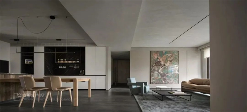 客餐厅也同样使用西慕艺术水泥一体化打造,让整个空间的视野更加开阔和通透,设计师无论在色彩、墙面设计、家具选择、还是细节搭配上都有着精致的考量。