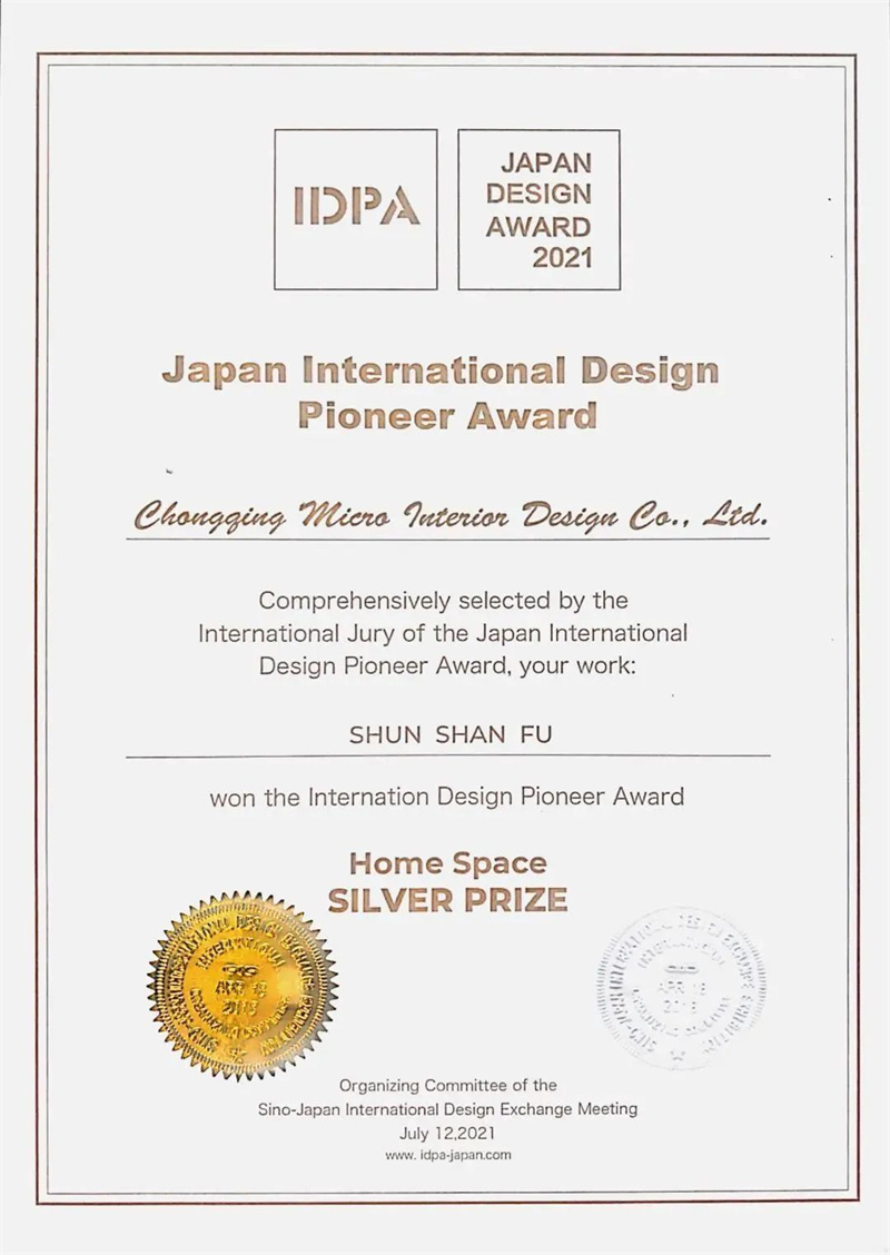 2020-2021第三屆日本IDPA AWARD国际先锋设计大奖颁奖典礼于日本东京成功举办。经组委会评审委员会对作品及行业影响力综合审核,西慕艺术水泥携手重庆微观打造的设计作品《舜山府》荣获第三届日本IDPA AWARD国际先锋设计大奖“家居空间设计”银奖!