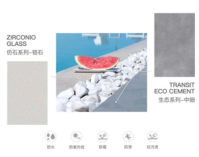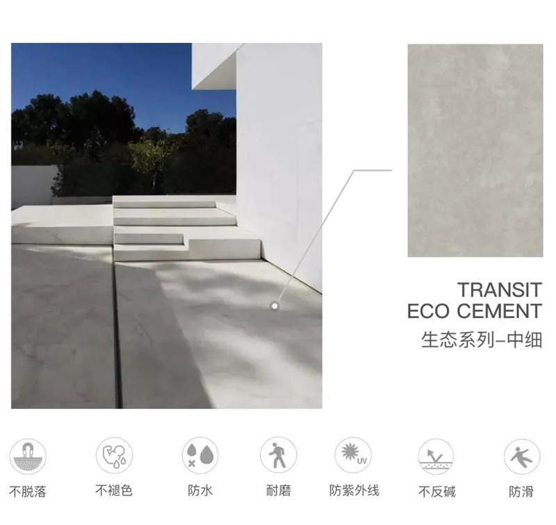 地面使用生态系列中细型、微细型,耐磨、防滑、防紫外线、防水、防霉、防潮等性能也同样适用于室外的地面应用。