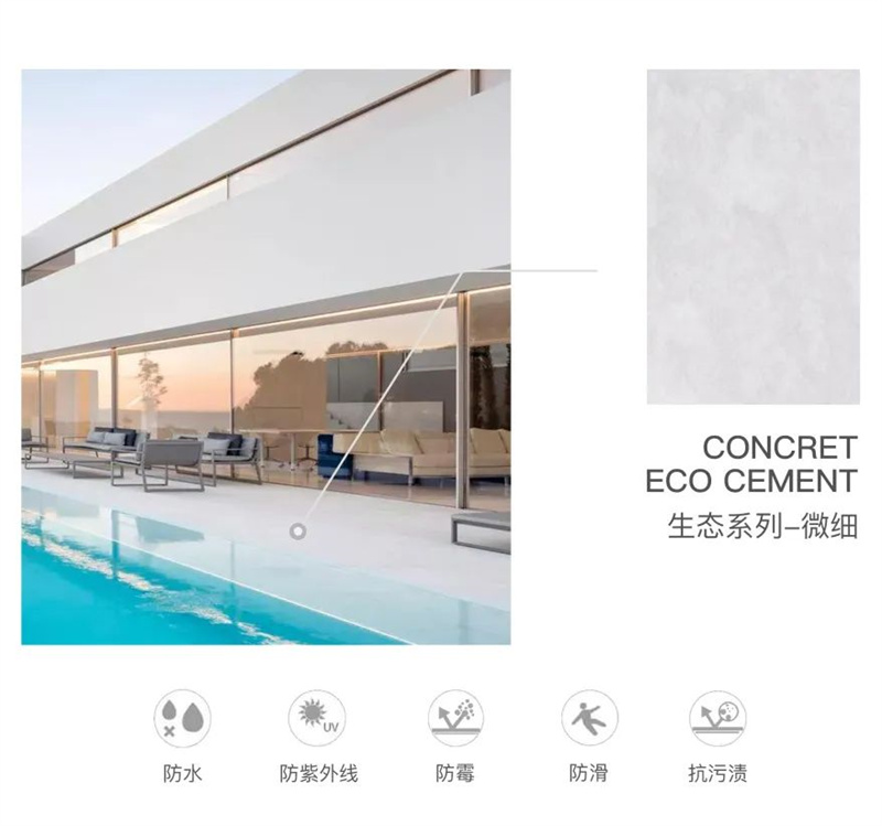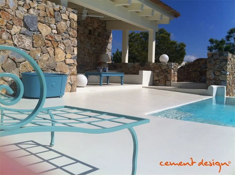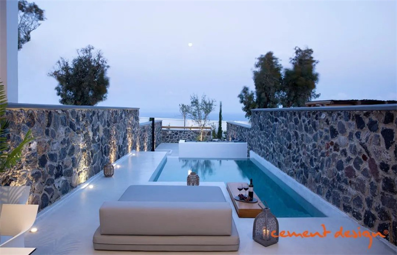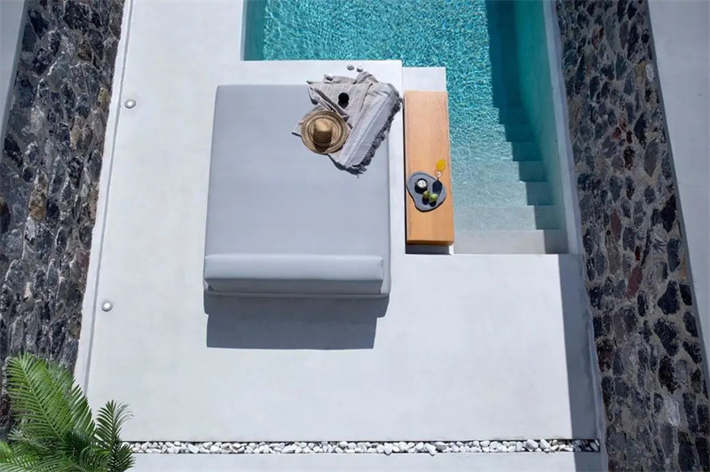 西慕微水泥还有防滑、防紫外线的功能,适合用于游泳池地面,平整无缝的视觉效果也成为了设计师偏爱的效果,在许多泳池设计中都采用了西慕微水泥来呈现。