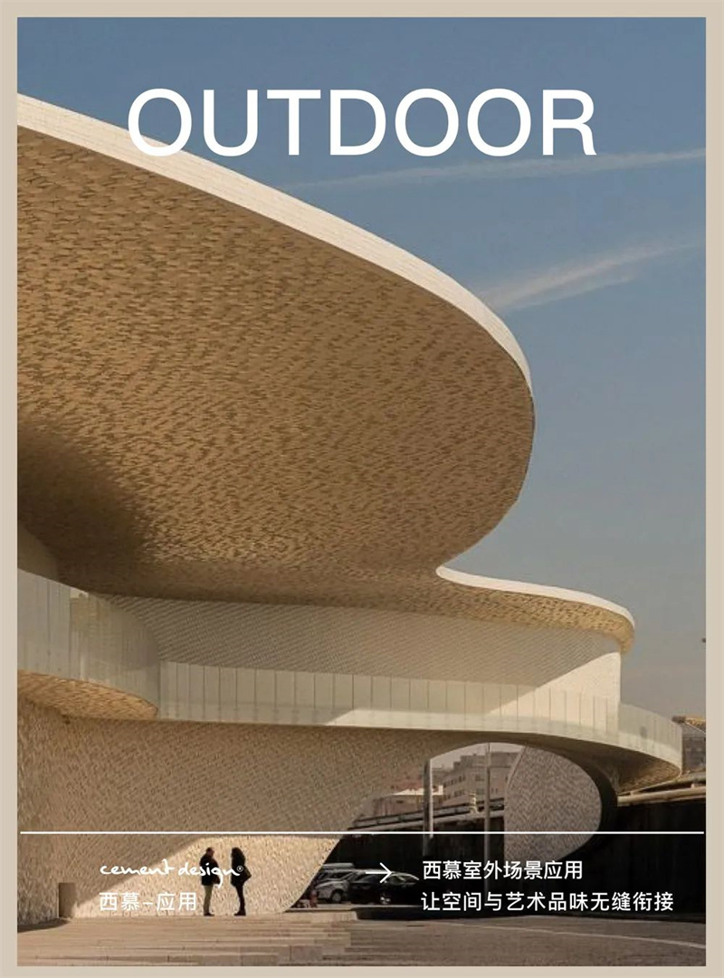 西慕艺术水泥除了超高的颜值以外,应用场景也十分广泛,可以用于室外环境,具有防水、抗污、防潮、耐盐雾、耐紫外线等性能。