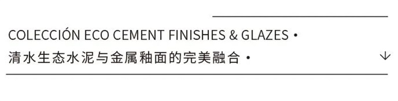 除了西慕金属复古系列,西慕的清水生态水泥系列也可以打造金属效果,高贵优雅的混凝土质感和坚固性,突破了传统混凝土色彩的单一性。西慕在产品基础上,增加了一系列创新的釉面和金属釉。