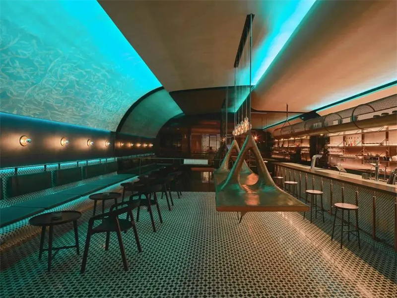 上海法租界的ad hoC 咖啡店以复古与新潮结合,艺术家 RJ Tripodi用西慕清水生态水泥融合亮光罩面,每一寸图案与光感肌理都在追忆着老上海30年代充满文人情怀的咖啡历史。
