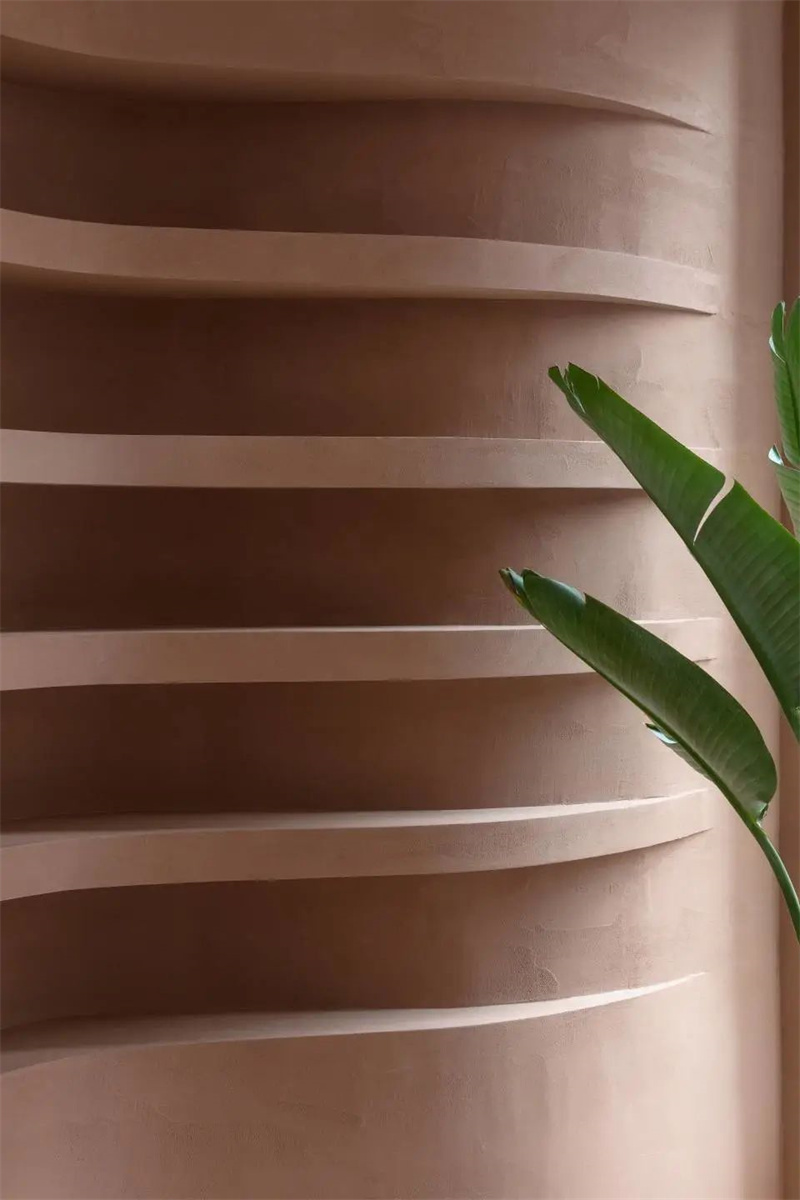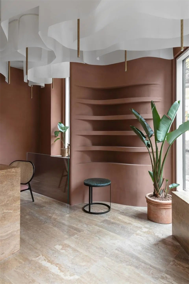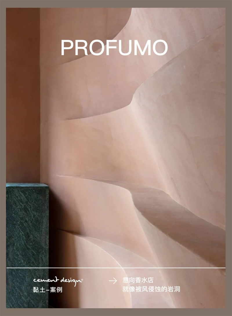 Profumo应用了 Matteo Brioni 的Terravista黏土,使用不同的颜色为顾客在每一层提供不同的体验。对于街道层,使用了红色、更土质的粘土Cammeo。而地下室则选择了黄色的Senape。