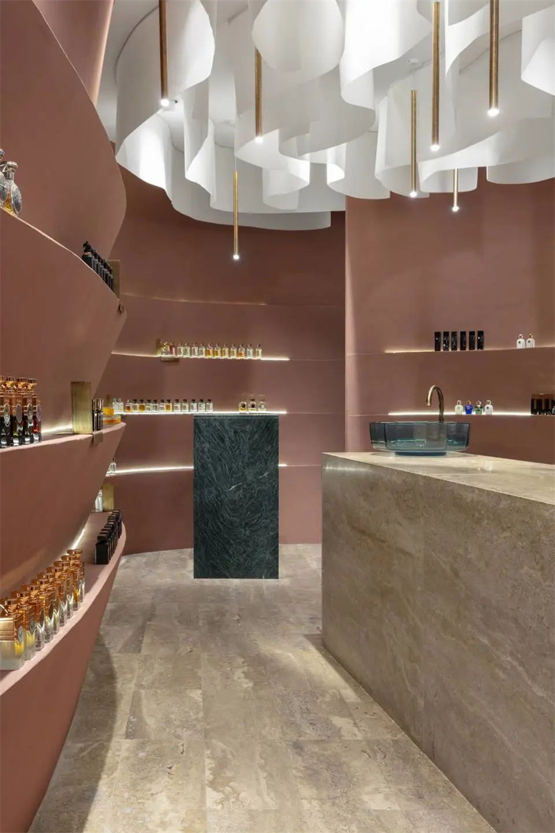 该香水店设计就像风在岩石之间吹动并塑造它们的形态一样,香水渗透到身体中,形成了它的灵魂。