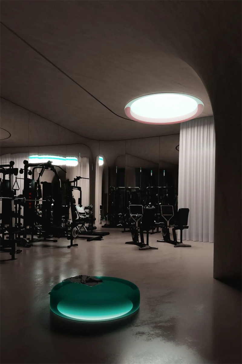 螺旋形楼梯会通向工作室的地下部分,工作室将其想象为一系列圆形层。第一层位于地下15米处,拥有一系列生活空间,旨在舒适地容纳两个或三个家庭。