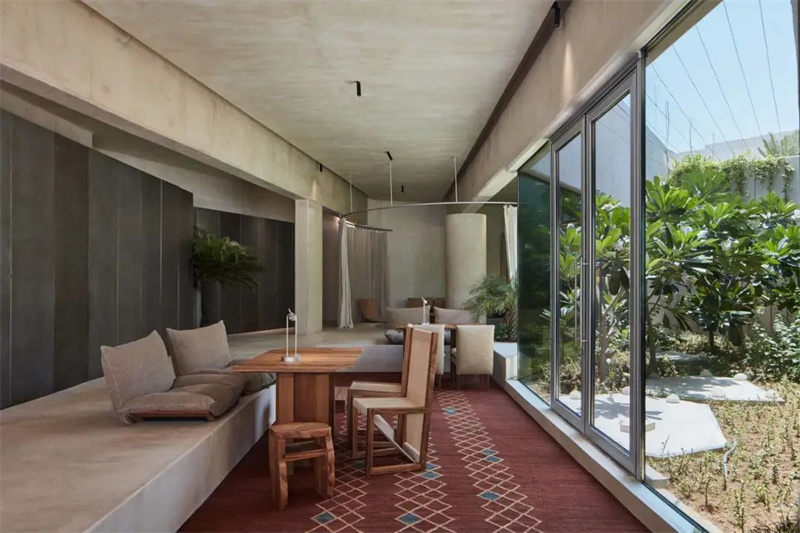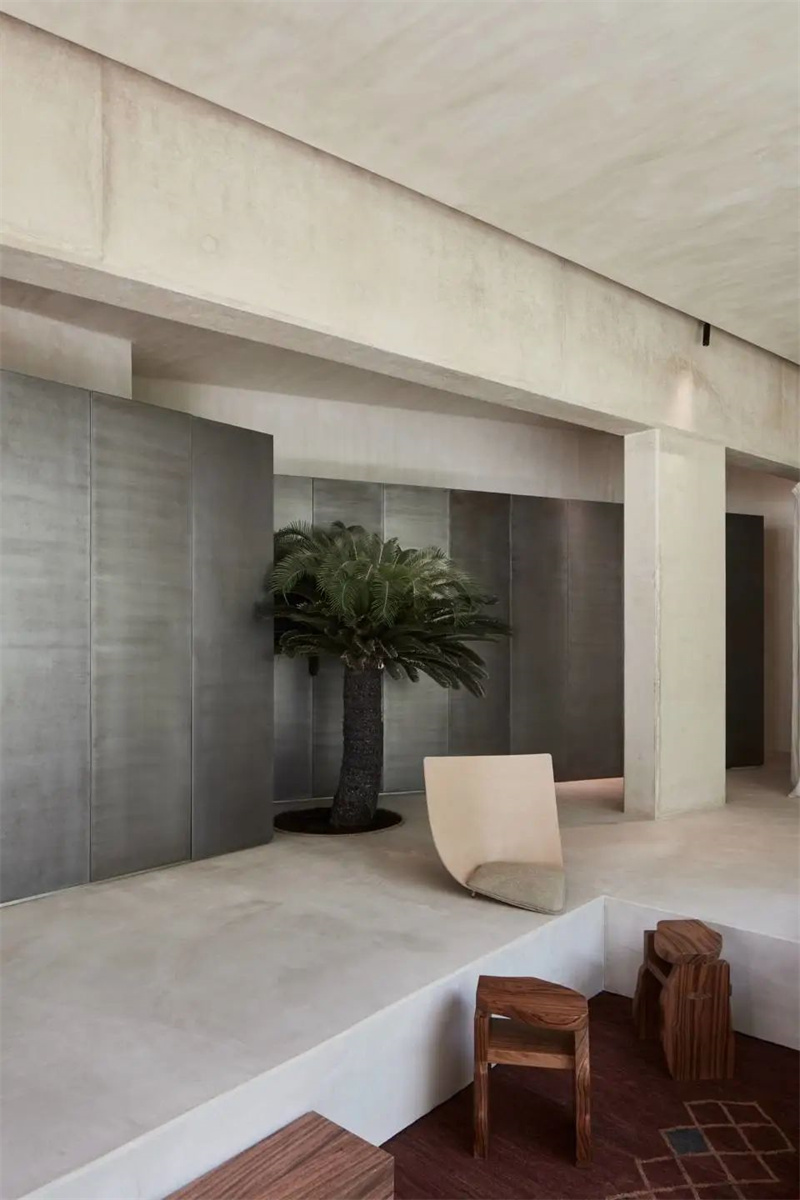 设计师希望创作与阿联酋文化的起源联系起来的空间,材料的选择是为了致敬自然和原始。在室内保持了场地原有的混凝土骨架使材料的干预最小化。