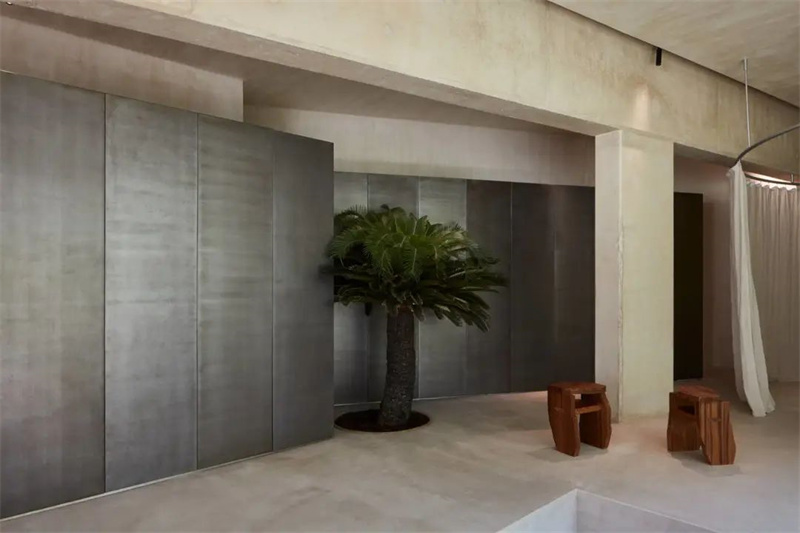 此外,画廊加强了与Matteo的专业对话,整合了独特、可持续和美丽的生粘土产品,粗粒粘土灰泥 MultiTerra Wabi Sale Grigio和Polvere,细粒粘土饰面 TerraVista Smooth Panna 应用于Kalpa Art Living 画廊的墙壁上,这些产品非常适合室内建筑表面的自然覆层。