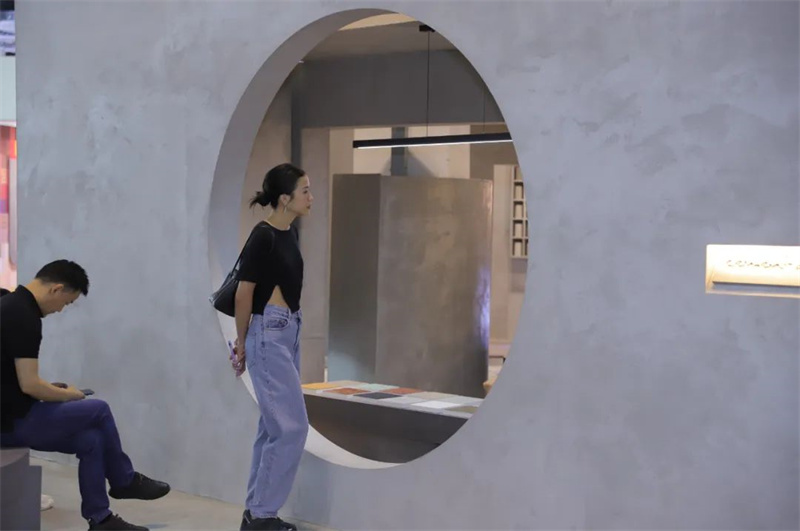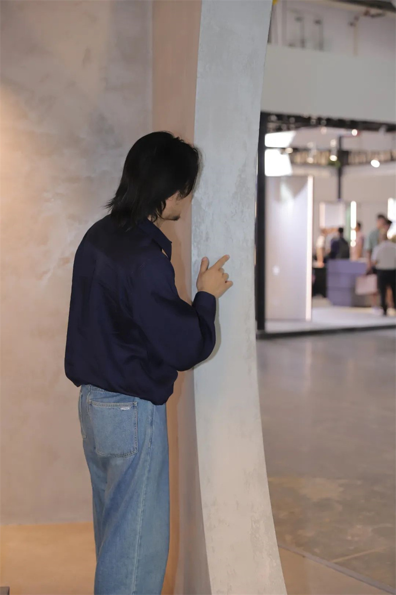 更多的观众则选择满足自己的好奇心,踏入墙内,观赏一番展位内景象的同时,对Cement Design材料所营造的整体氛围有了进一步认识。