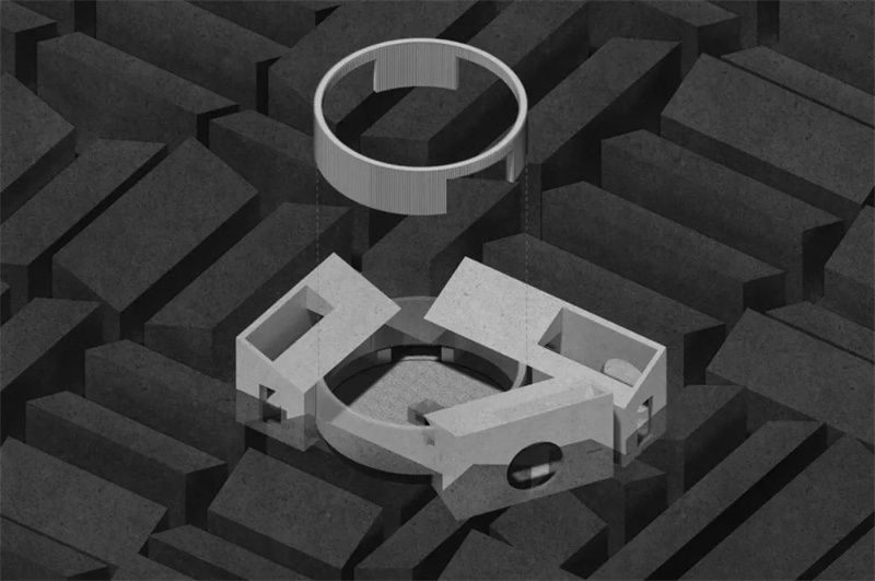 Cement Design 展位侧面圆窗开口©Spatial Praxes