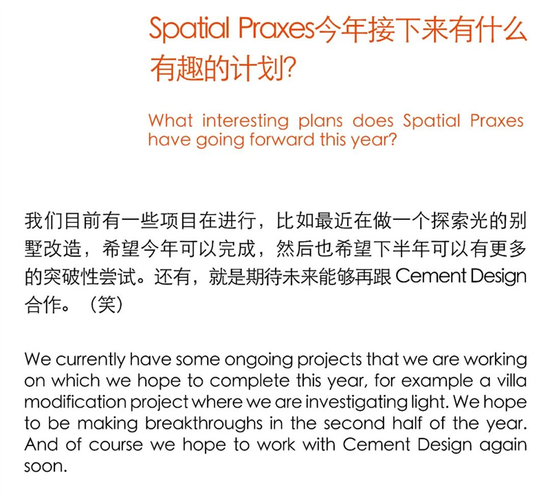 展会后,我们到Spatial Praxes工作室采访到了合伙人之一Scott,跟他聊了聊成立团队的心路历程,还有这次Cement Design展位背后更多的设计思考。