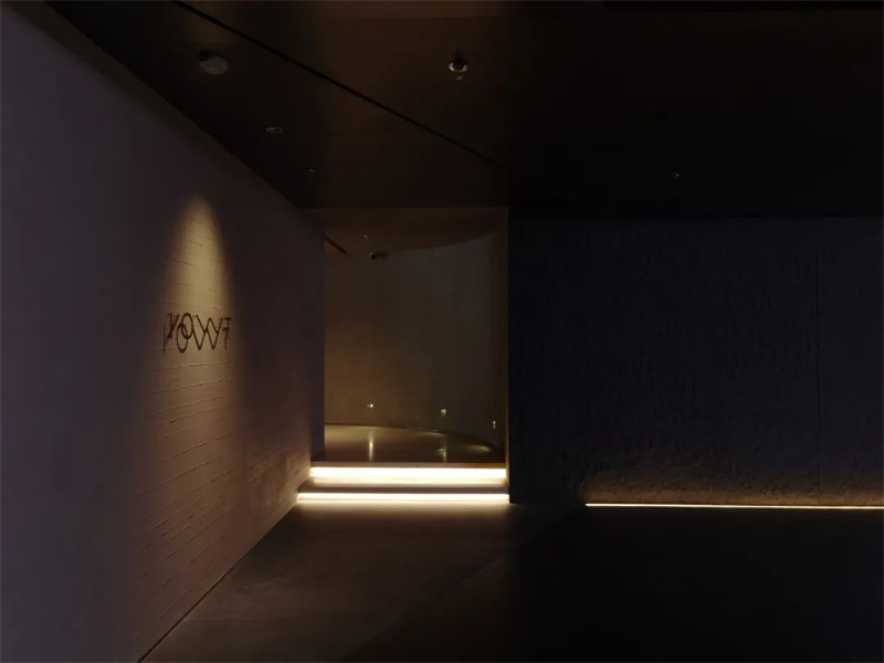 The unique textured exterior wall distinguishes ROWT from the surrounding restaurants. Craftsmen from Cement Design handcrafted rough patterns on the walls, ensuring that each trace runs parallel to the ground, thus creating a sense of harmonious order and highlighting the natural and unpretentious qualities of the material. The sturdy outer wall, complemented by coating layer, imparts the restaurant entrance with integrity and distinctive recognition