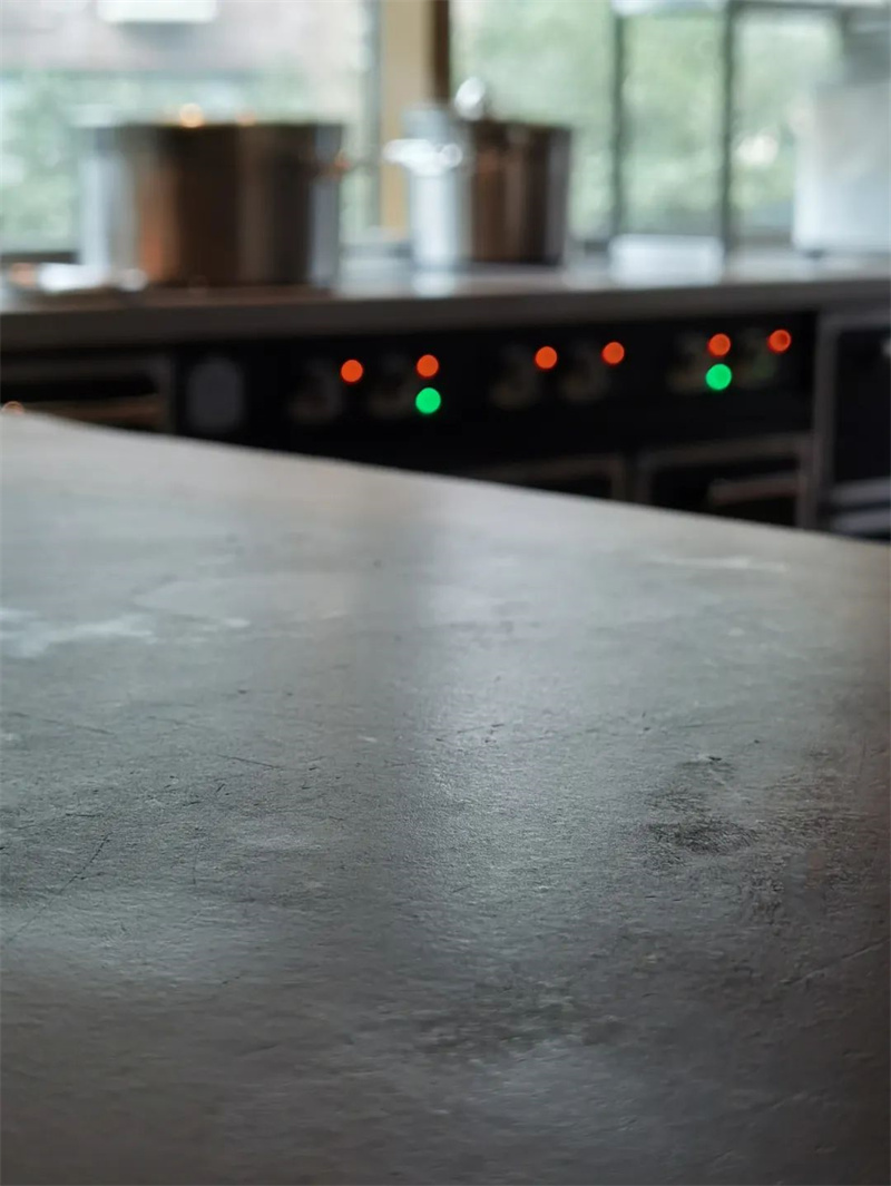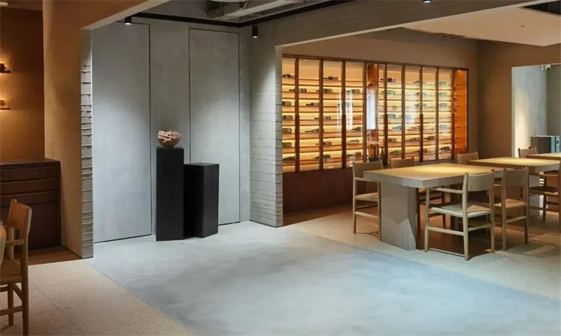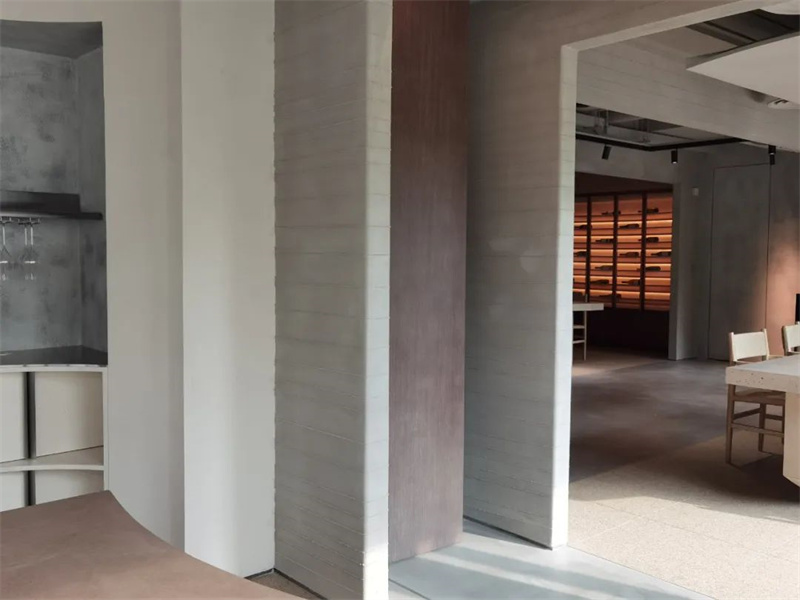 通过将质感各异的艺术水泥应用于不同区域,在保证视觉观感的前提下起到了卓越的功能分区作用