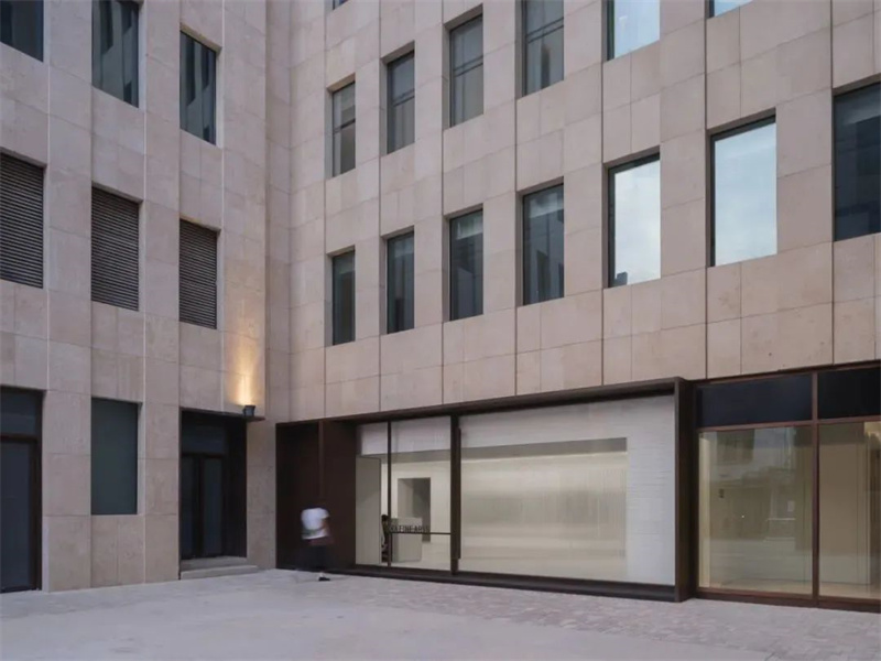 室内流畅平滑的地面,与户外浅灰色小砖铺设的街道形成鲜明对比,却又彼此相融合不冲突,新与旧、原始与精致、朴素与雅致,在这里和谐共存,平缓过渡。