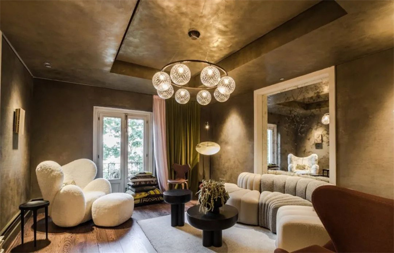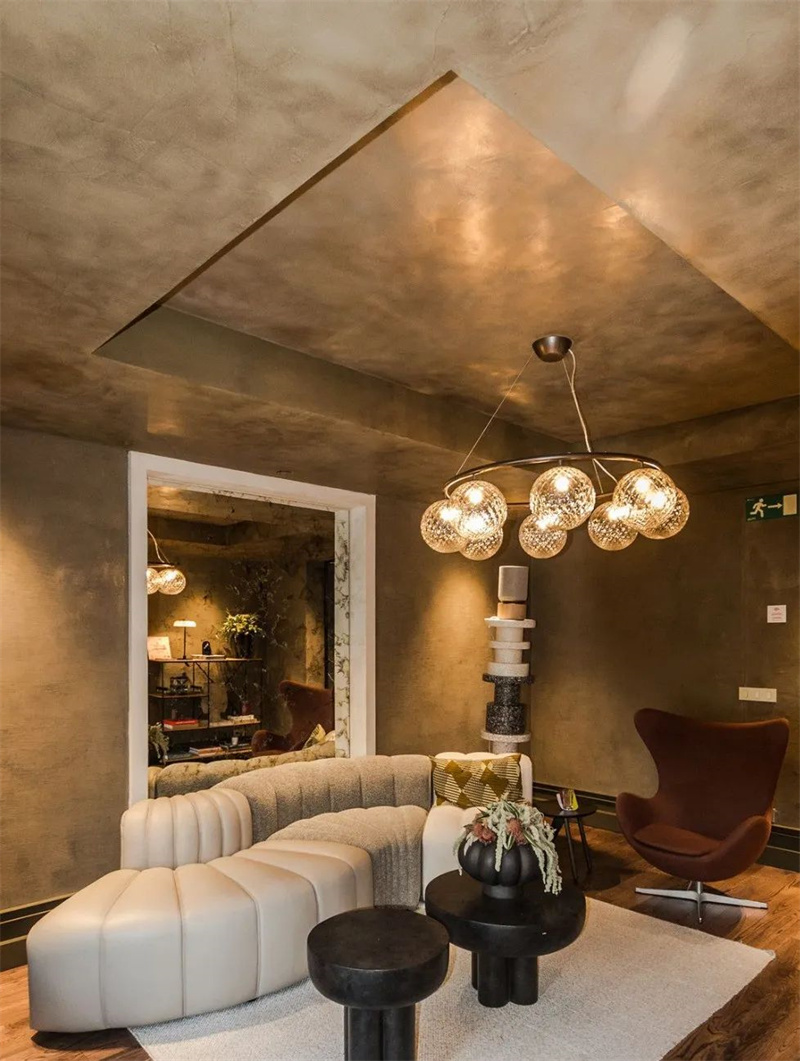 客厅空间的墙面和天花选用的是Cement Design “Metallic Collection”系列