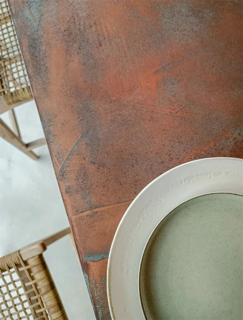 With the genuine appearance of corten steel, this product accomplishes to recreate vintage atmospheres with the uniqueness of oxidation. Incorporated into any Cement Design’s coating, it allows the adhesion of magnets by its magnetic capacity