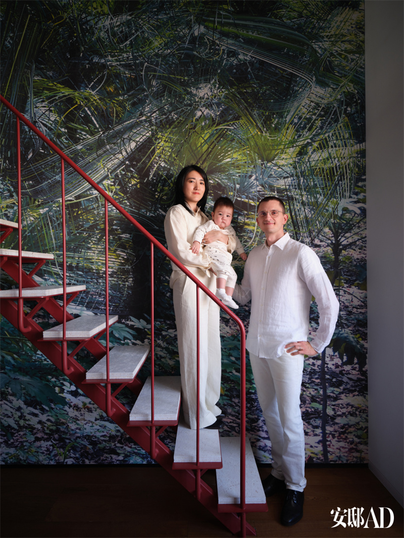 屋主、设计师孙凯伦和先生、青年艺术家RJ Tripodi及女儿孙莉森在一起。孙凯伦是FLIP studio创始人、FLIPPOP艺术空间主理人。她是美国耶鲁大学建筑学硕士、弗吉尼亚大学建筑学专业理学学士,先后在如恩设计研究室、矶崎新+胡倩工作室工作。她参与完成的代表作品包括雪花秀韩国首尔旗舰店、山西省大同大剧院、FLIPPOP城市空间。目前她担任上海交通大学建筑系实践导师。
