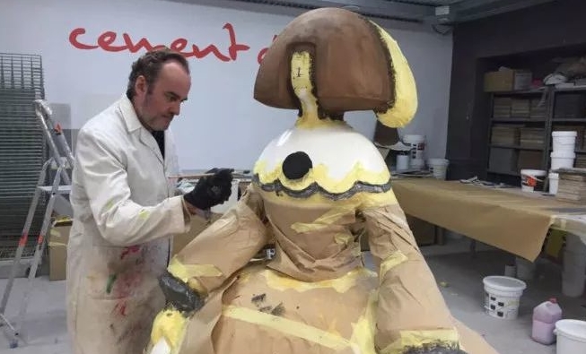 Felipao在西慕艺术水泥工作室中修补“大胆的宫娥”的上面一部分